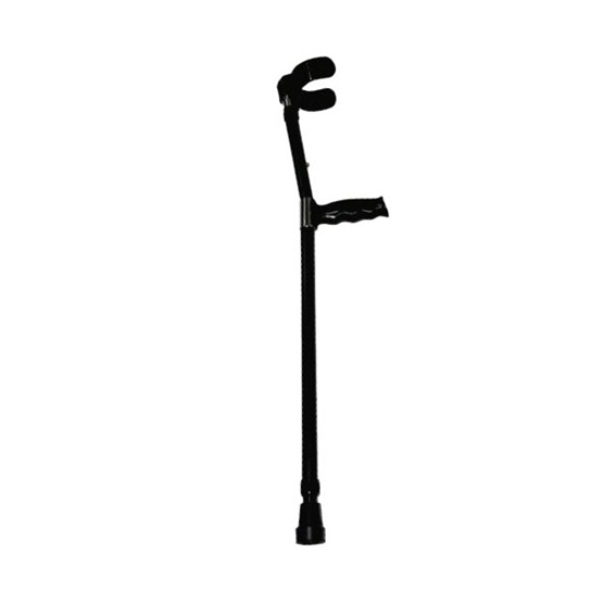 Brazalete ajustado escualizable. Capacidad de Peso 100 Kg. Con sistema en pin para graduar altura total y del brazalete. Cuenta con rosca de seguridad. Soporte manilar plástico cómodo. Recatón antideslizante.